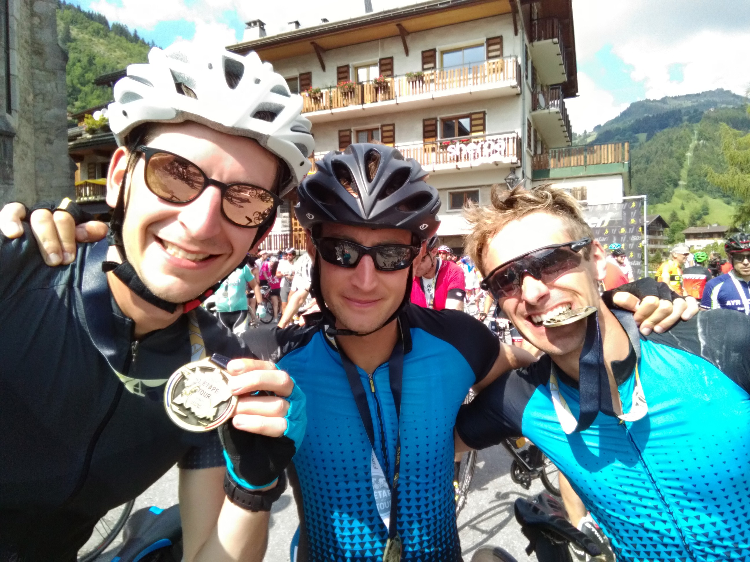 Objectif atteint puisque nous terminons en 8 h 56 ! Une fois la ligne d’arrivée franchie, c’est le sentiment de fierté qui prime ! Fier d’être finisher de cette belle et exigeante course mais surtout très heureux d’avoir pu la faire du début à la fin avec les copains. On a discuté et rigolé quasiment tout le long, sans se prendre au sérieux (entre 45 min et 1 h passé aux ravitos !) et sans soucis de performance (sandwichs pain d’épices/fromage à raclette en guise de ravito pour moi tout le long de la course). Personnellement, je sais que c’est la meilleure façon pour moi d’aborder ce genre de longues courses, sans stress et sans soucis chronométrique. J’ai réalisé cette Etape du tour sur un rythme normal, sans me rentrer dedans, en gérant mon effort comme j’ai l’habitude de le faire et cela m’a permis de profiter à fond de l’événement.